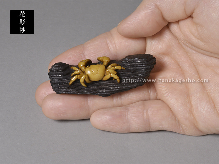 以前制作した「重畳」というタイトルの作品(2023年ポートフォリオ)をもう少し発展させてみようというところから制作を始めました。 より小さく細く造形の密度を上げつつ、根付としての使用に耐える強度を保ちつつ土台と生物がなるべく接地していなさそうに見える造形を模索しています。 ぜひ直接触れてご鑑賞いただければ幸いです。(カタクラ ケンタ) |