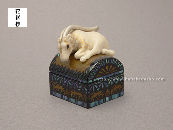 研出蒔絵、螺鈿/鹿角、朴、漆、金、銀、白蝶貝、青貝、顔料