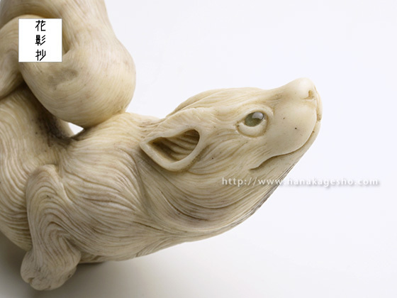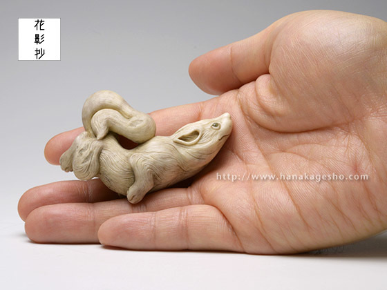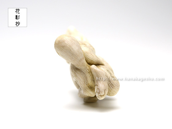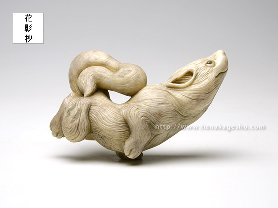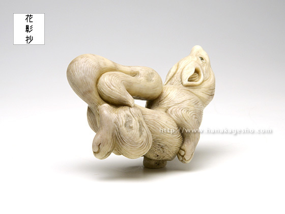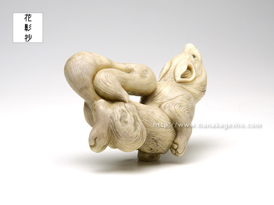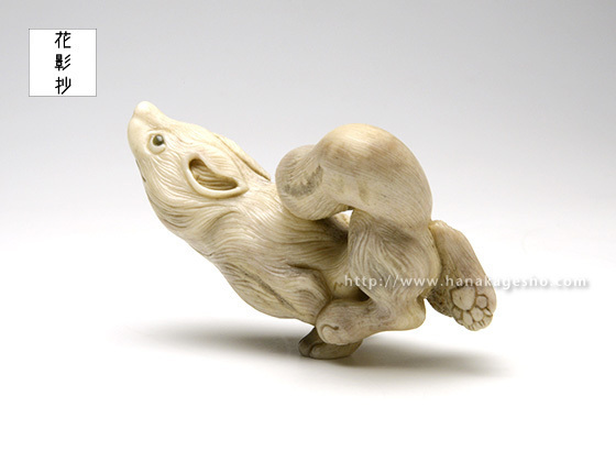 狼は力強く、凶暴なイメージもありますが、山などで道を教えてくれるなどの言い伝えがある様です。今回はそちらのイメージで優しさや、やわらかな印象を出せる様に意識して製作しています。(真武)