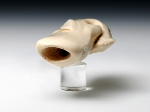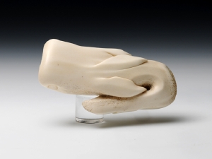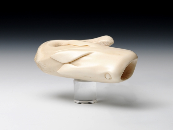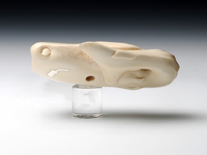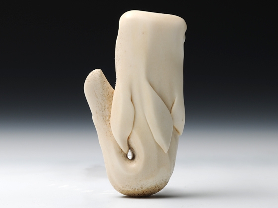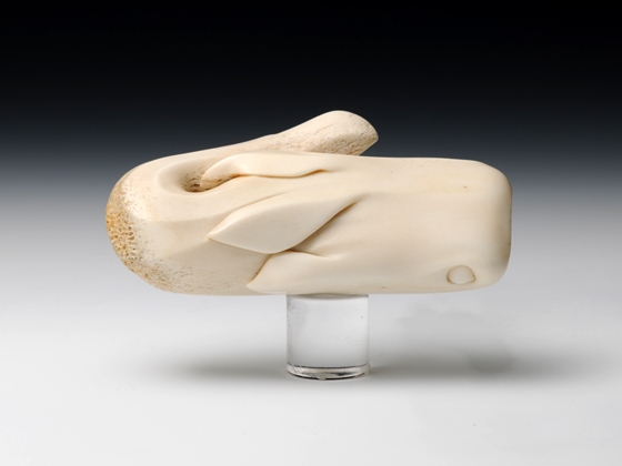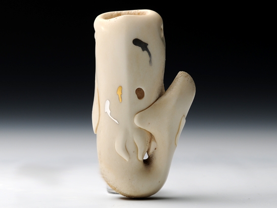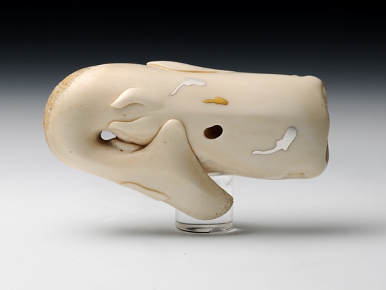 ジンベエザメの裏に、金と銀でコバンザメのシルエットを象嵌しています。