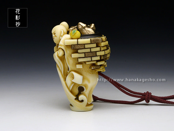 象牙 象嵌:10金、黒檀、羊角、岩絵具、酸性染料