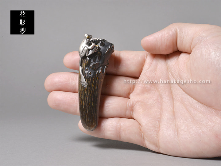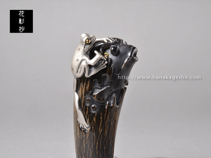 鯉(水牛角 象嵌:真鍮、925銀、樹脂) 蛙(925銀 象嵌:18金、赤銅、四分一)