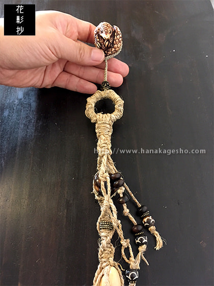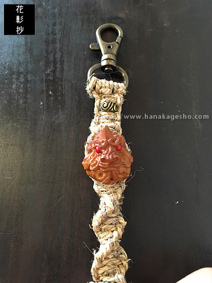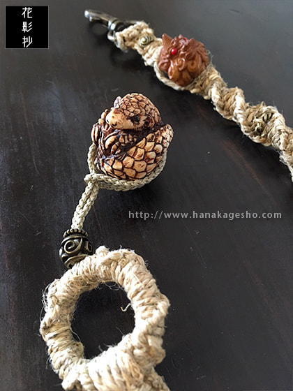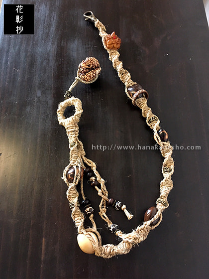 麻編みウォレットコード、センザンコウ根付ストラップ付き。