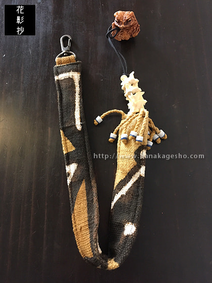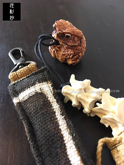 布製ウォレットコード、ニホンヒキガエル丸根付付き。