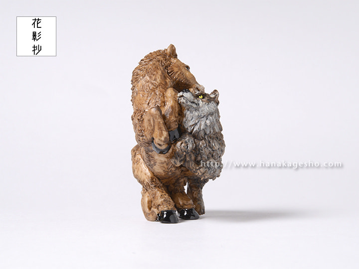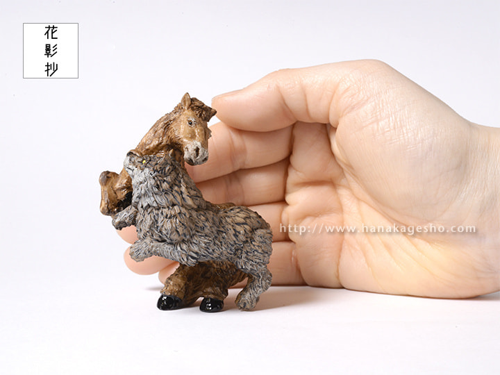 お待たせいたしました。干支根付「午」完成いたしました。この午をもって干支根付もいよいよ後半戦がスタートしたわけです。長らく酔狂にお付き合いいただき感謝しております。というわけで午、ウマですね。このシリーズは基本的には野生の動物をモチーフに制作しています。ですので、午、そして来年の未あたりは必然的にモチーフとなる動物が絞られてくるのですが、今回はある意味でのストレート、「モウコノウマ」をモチーフにモンゴルの豊かな草原を疾る姿で制作しました。相方に選んだのはこれもモンゴルに棲息するオオカミです。もちろん実際の野生下においてはこの2頭は捕食する、されるという間柄ですが、今回においてはライバルでもあり、相棒といったイメージです。全く個性も性格も違うもの同士がタッグを組み、共に走るという得意を活かして大自然を生き抜いていく、そういう姿を夢想しました。意見やそもそも生き方が違う同士でも手をとりあうことができればいいのになあ、なんて2025年を振り返ったりしたものですから……。(守亜)