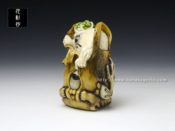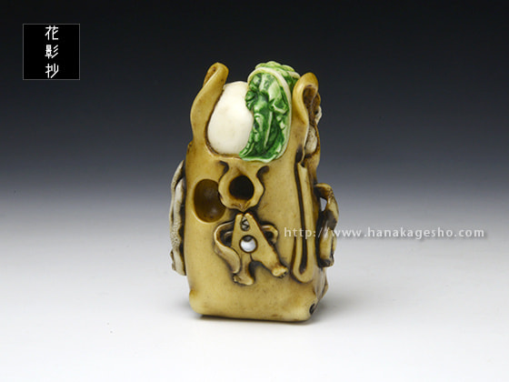 鹿角 象嵌:白蝶貝、黒水牛角