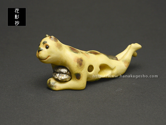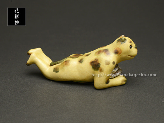 黄楊 象嵌:ガラス、鹿角 彩色:染料、ウレタンコート