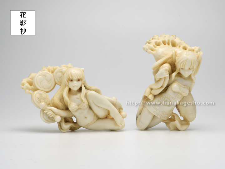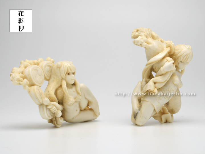 雷神/7.7 × 4.7 × 3.1 cm 風神/7.3 x 4.6 x 3.9 cm
