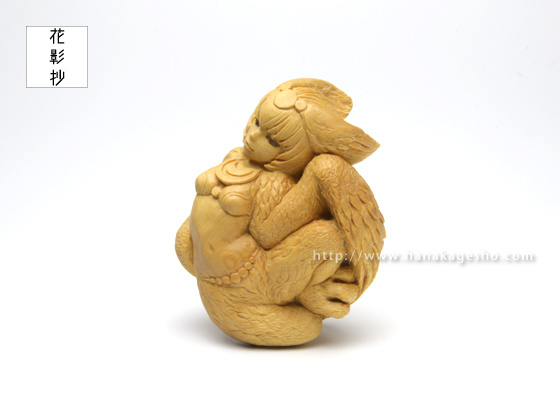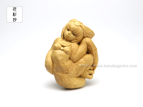 黄楊、ガラス、岩絵具