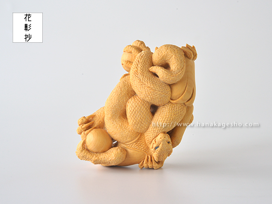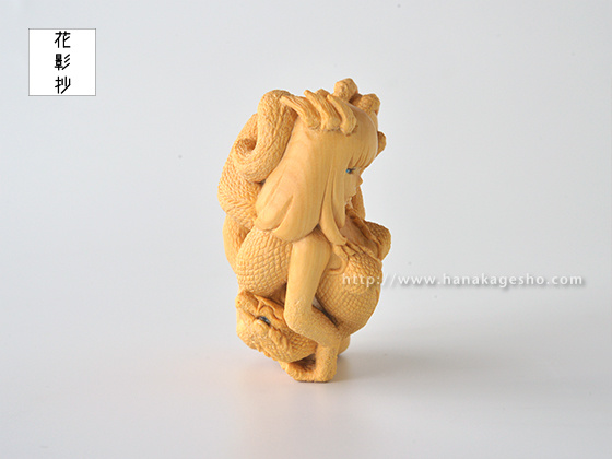 「龍神のつがいです。オスの龍の脱皮した皮がメスの龍の服になります。2つの玉はそれぞれの魂です」(永島信也)