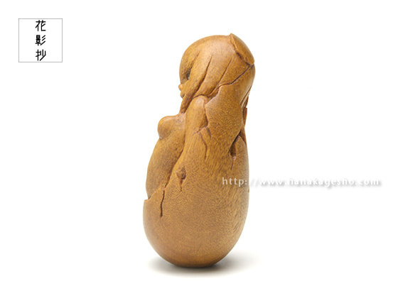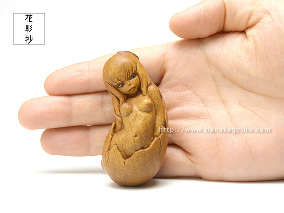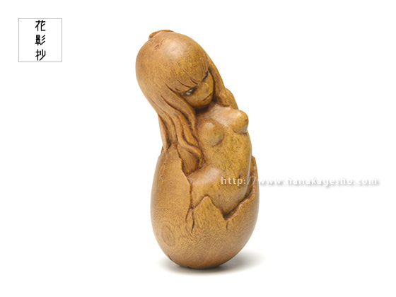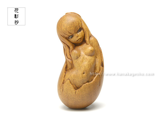 「卵生少女シリーズは何作か作っていますが、人間なのに卵生というファンタジー性と、生まれたばかりの無垢な存在であるところが気に入っています。何にも染まっていないからっぽの状態という点では、今回の“からの依り代”にふさわしい作品であると考えています」(永島信也)