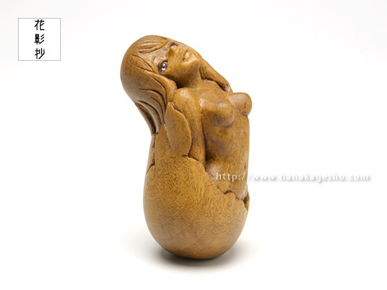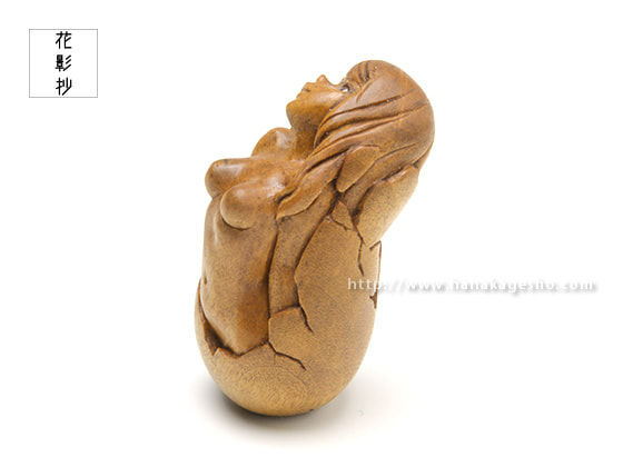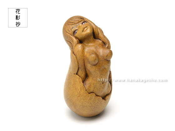「卵生少女シリーズは何作か作っていますが、人間なのに卵生というファンタジー性と、生まれたばかりの無垢な存在であるところが気に入っています。何にも染まっていないからっぽの状態という点では、今回の“からの依り代”にふさわしい作品であると考えています」(永島信也)