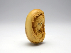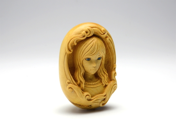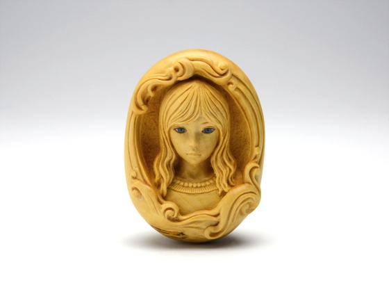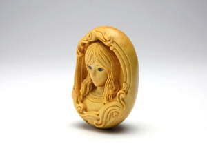 黄楊、岩絵具、琥珀
