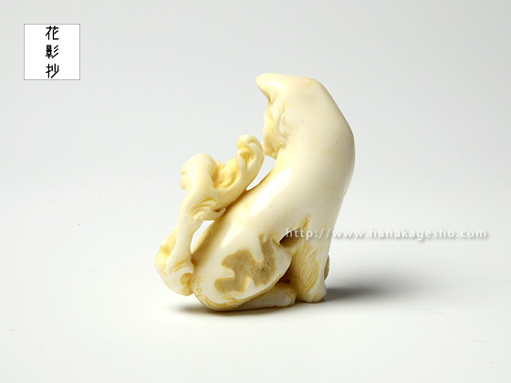 鹿角 象嵌:琥珀、岩絵具