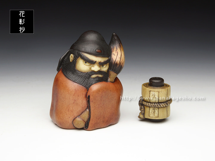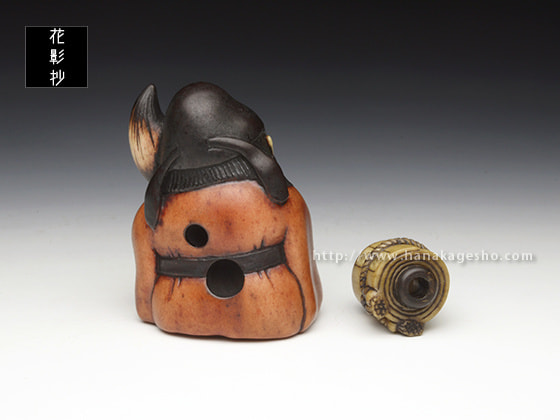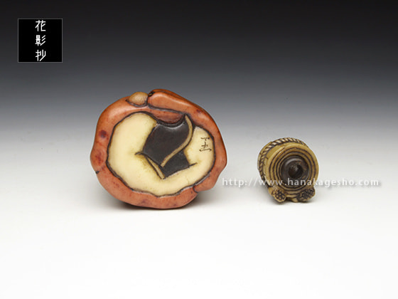 根付;4.0 × 3.1 × 2.6 cm 緒締;1.9 × 1.5 × 1.4 cm