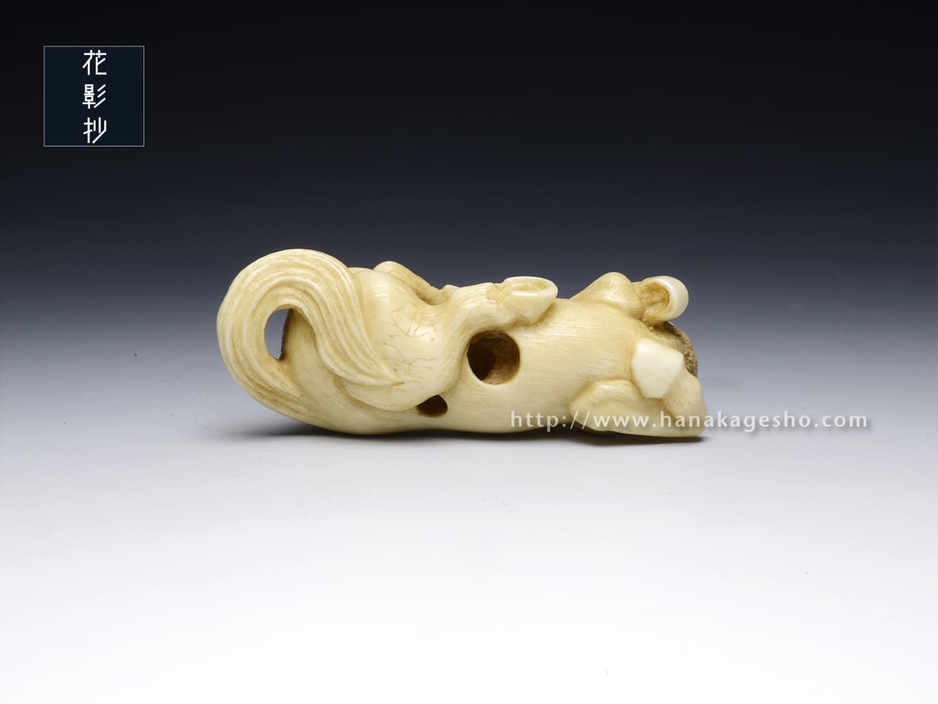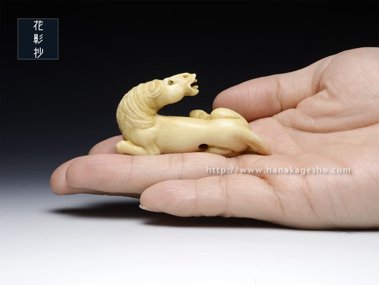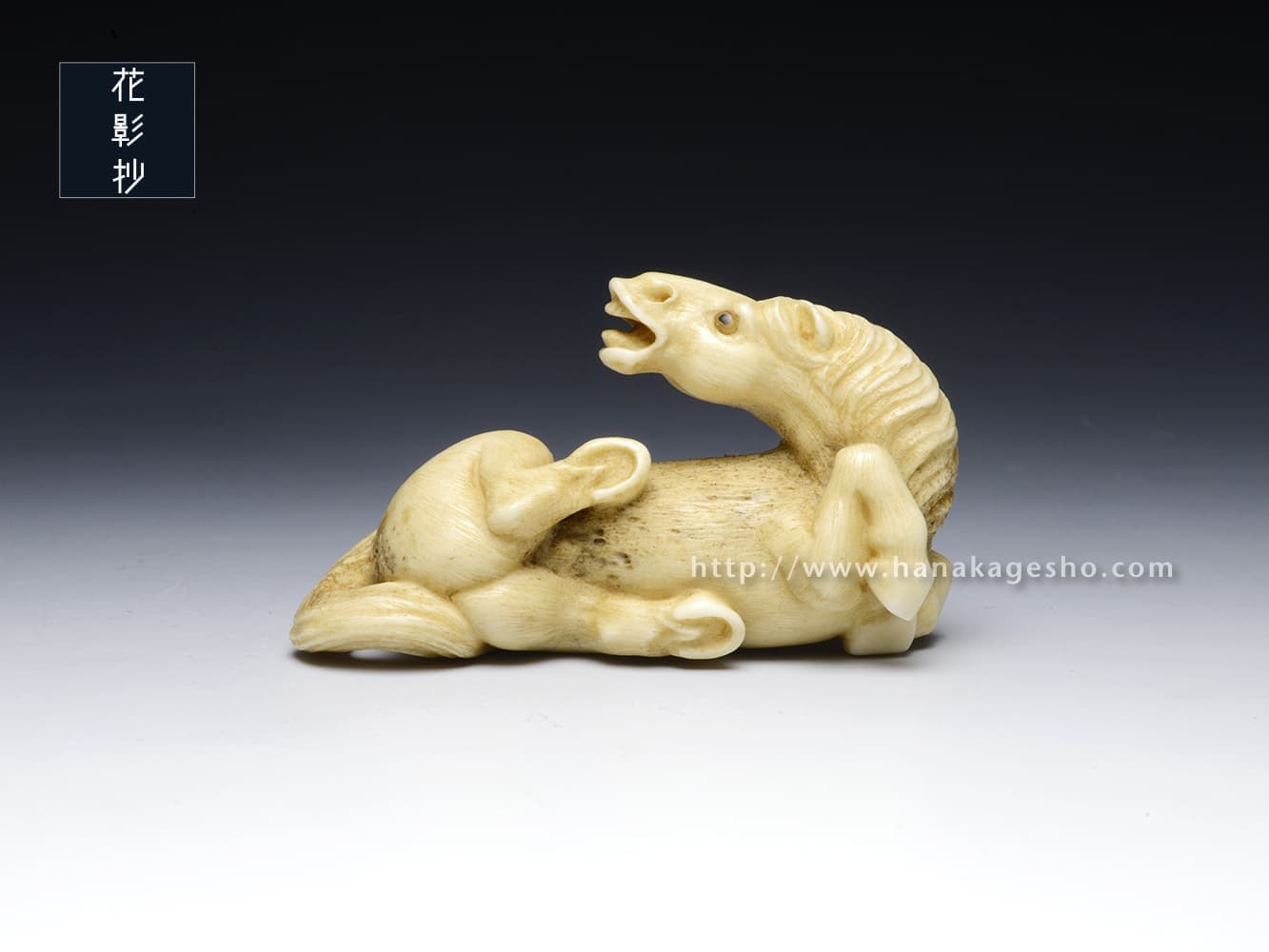 HOME | EXHIBITION | 馬 大きさ (size) 6.1 × 3.5 × 2.4 cm 素材 (material) 鹿角 象嵌:羊角、アクリル (stag antler inlay: ram’s horn, acrylic) 価格 (price) 販売済(sold) 作品のお問合せはこちら。 Please contact us regarding our products here. お問い合わせフォーム(日本語) Enquiry Form in English