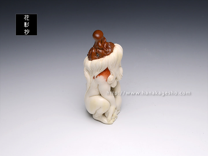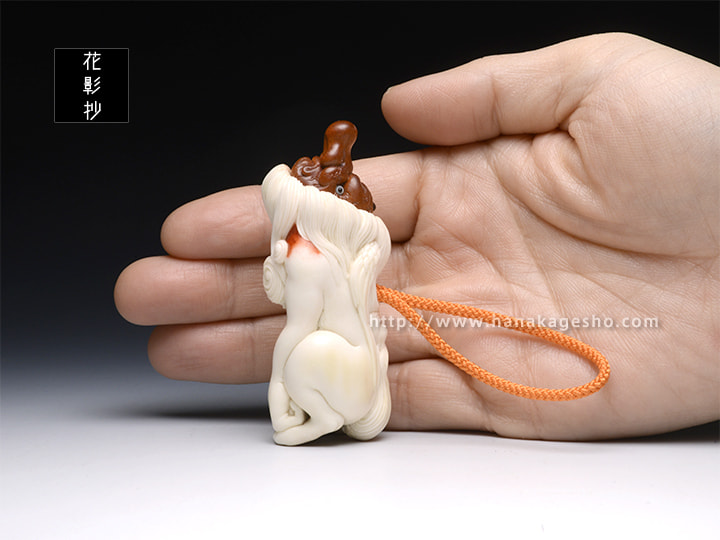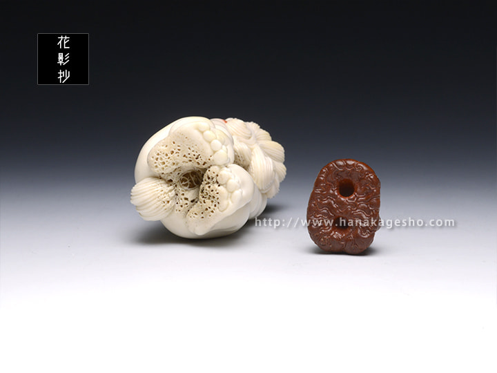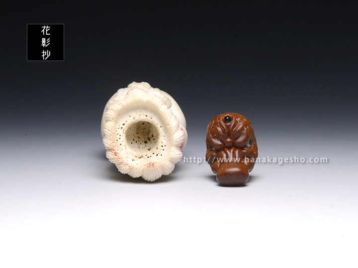 蝦夷鹿角、ピンクアイボリー 象嵌:蝦夷鹿角、黒水牛角