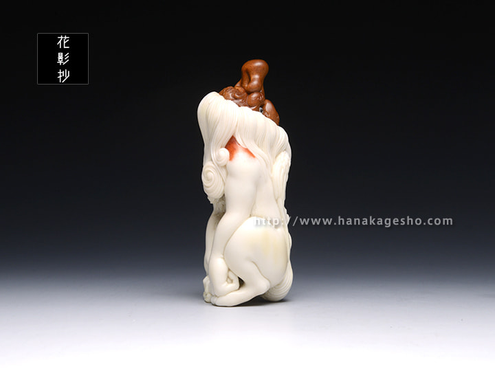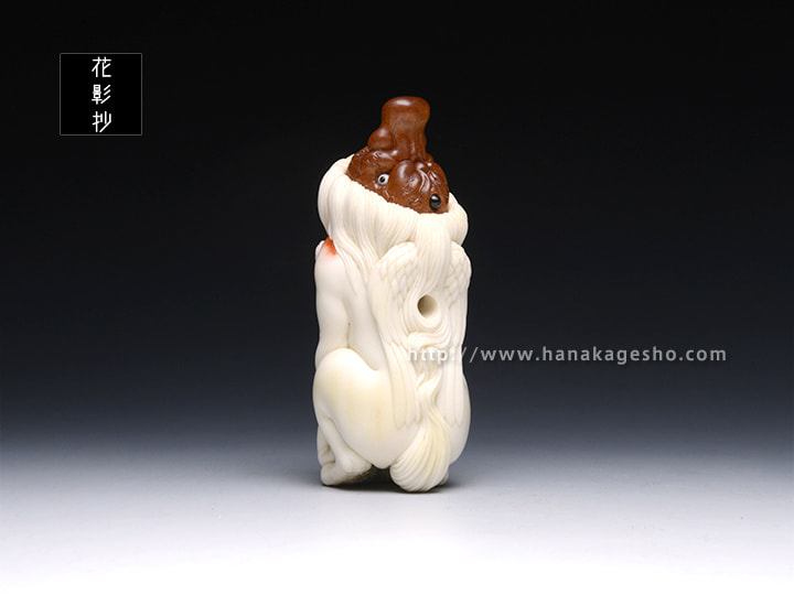 自らの命と引き換えに一族を生き長らえさせた山狗の霊体は天に昇ろうと体から分離し始める。一部始終を見ていたとある山妖がその遺骸から鼻の大きな肉面を捏ね上げ、山狗の霊体を鷲掴むとおもむろに肉面を掛けた。すると山狗の霊体が徐々にヒトガタに変貌して行き、肉面から滴り落ちる血が淡白い霊体を徐々に赤く染め真白な羽を生やした。満足気な山妖はいつものように自らが生み出した作品に命を吹き込むべく言霊を行使し、「天狗」と命名した…(至水)