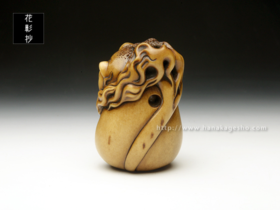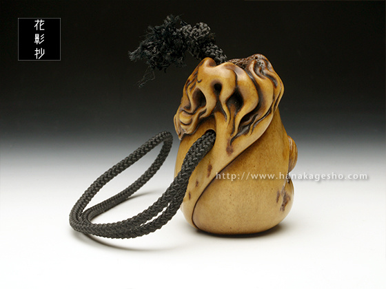 蝦夷鹿角、象嵌:黒水牛角