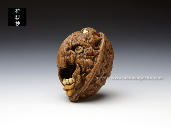 異形種子販売「邪ノ実屋」店主 鬼胡桃鬼栽培家 至水より、この春に採集されました二つ目の鬼胡桃鬼の御紹介です。鬼魂に炙られた胡桃の変容「鬼成」は多種多様な姿で確認されており蒐集欲を掻き立てられるものであります。この度入荷致しました鬼胡桃鬼は、胡桃本来の姿を残した鬼成が特徴で、未成熟な味わいをお楽しみ頂ける品となっております。お客様の異形種子コレクションに加えて頂けたら幸いで御座います。(至水)