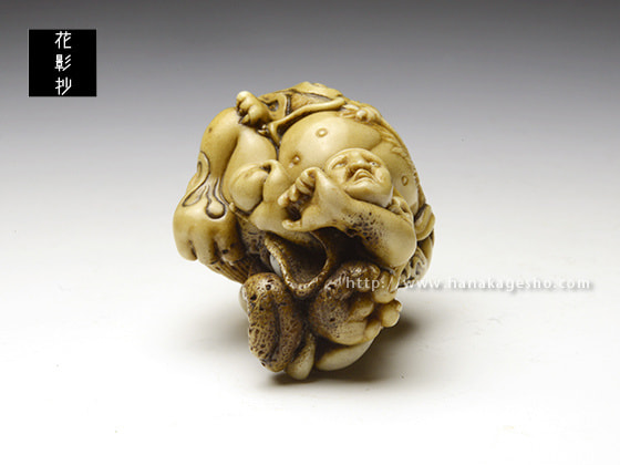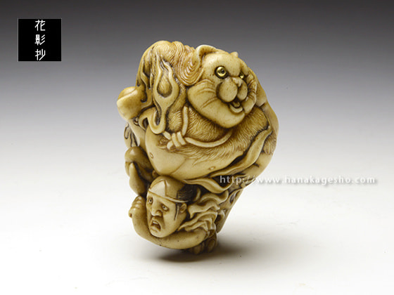 蝦夷鹿角 象嵌:真鍮、黒水牛角
