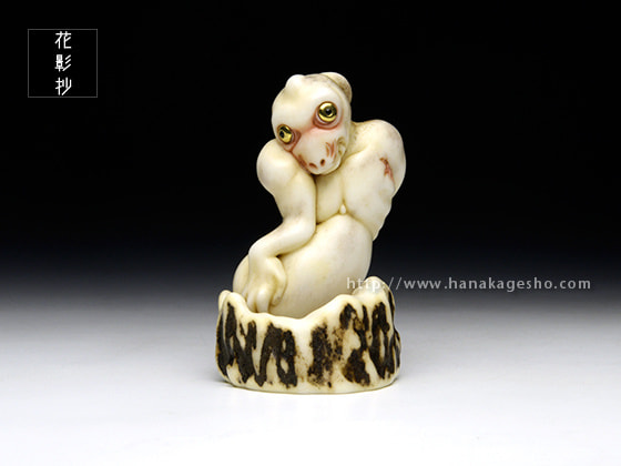「白うかり」 其々の名前が添えられた妖怪の姿が、まるで図鑑のように一妖ずつ描かれている松井文庫版「百鬼夜行絵巻」。 wikiによるとその冒頭には行灯を取り囲む人々が描かれているそうで、これってもしかして「丑三つ時、行灯の灯りを囲んだ人々が絵巻から一人一妖其々選び、妖怪話を創作して聞かせ合う」というゲームブック「百鬼夜行絵巻」のチュートリアルとして描かれているんじゃないの?と解釈し、それならばと至水がチョイスしたのが白うかり。 チュートリアルに従い創作百鬼夜行絵巻夜話と共に白うかりを根付化しました。 白うかりの百鬼夜行絵巻夜話、いつもの妄想奇譚は至水のブログ「悪魔ノ天秤」で公開です。併せてお楽しみください。 https://deadpool-shisui.blogspot.com/ |