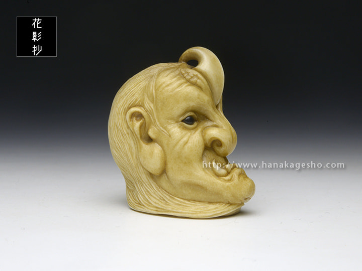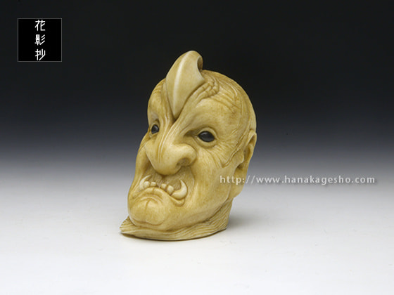 根付の形体的一様式である「面根付」から派生し、魔を退ける意を込め僧兵達が好んで身に着けたと云われる「斬首根付」。 今回製作した斬首根付「黒塚」は、鬼成事例の一つである「安達ケ原の鬼成」を根付化したものです。 更なる妄想奇譚は至水のブログ「悪魔ノ天秤」にて公開です、併せてお楽しみください。