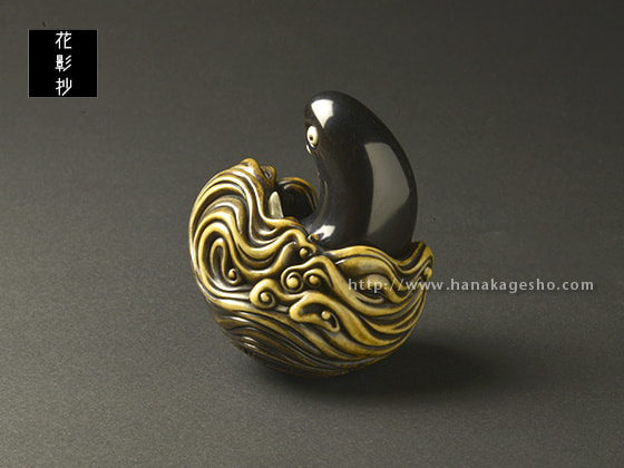 蝦夷鹿角、黒水牛角 象嵌:蝦夷鹿角、黒水牛角