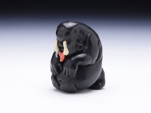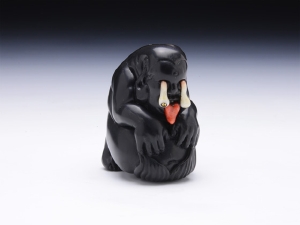 「塗仏」なんです。幾つか存在する塗仏の画には「妖怪塗仏」としての設定は特に記されていません。絵師によって細かい部分の違いもあります。皆「俺塗仏」にアレンジして描いてるんですよね。絶対楽しんで描いていたに違いない。妖怪ってそういうモノですよね♪ で、今回は「鳥山石燕+河鍋暁斎+佐脇嵩之÷至水」 な感じに。尾鰭+黒光り+てろり目と舌……。これは「鯰の骸の妖」なのでは?と妄想俺設定。(至水)