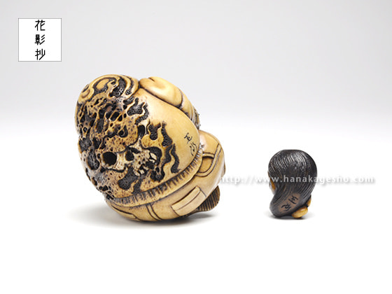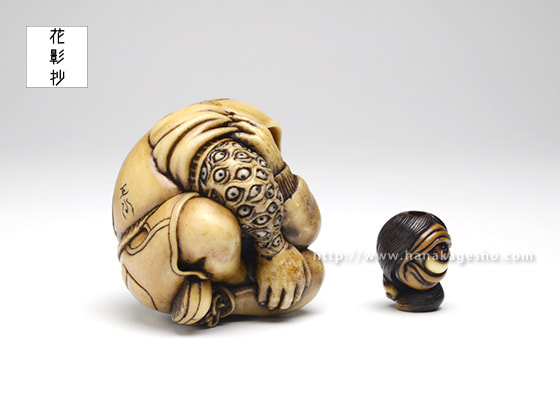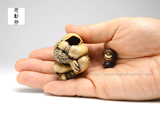 根付(百々目鬼);4.1 × 4.0 × 3.5 cm/緒締(百々目);1.8 × 1.4 × 1.3 cm