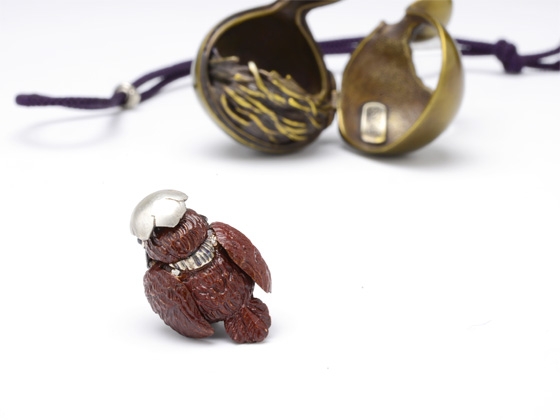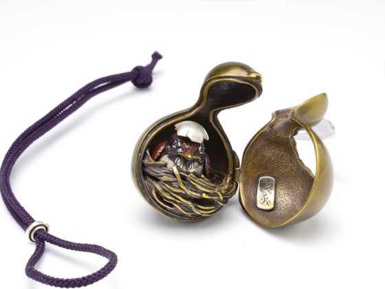 瓢箪/ 3.7 × 2.7 × 2.4 cm、雀/ 1.7 × 1.4 × 1.1