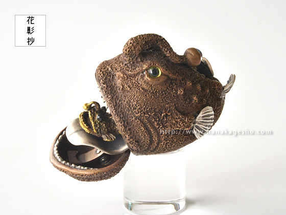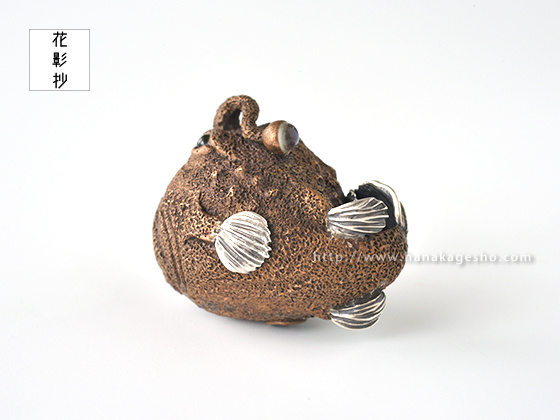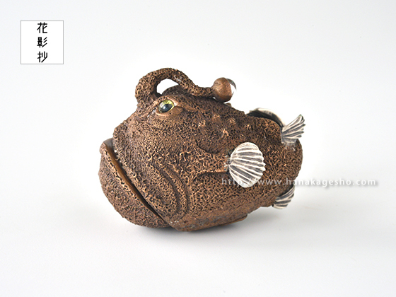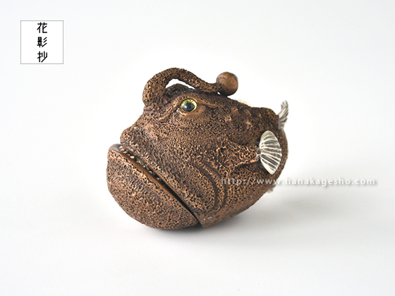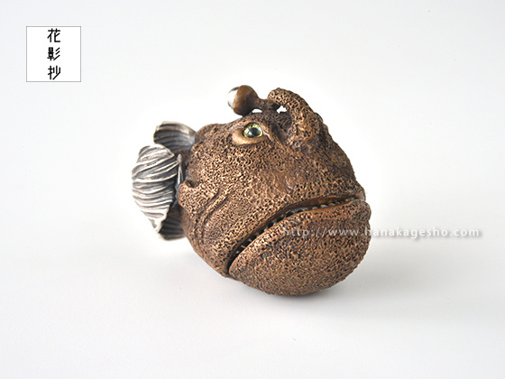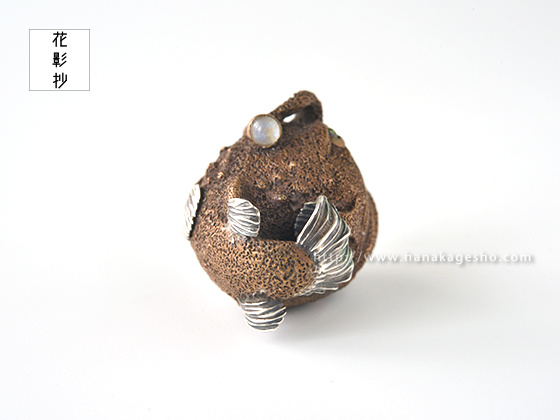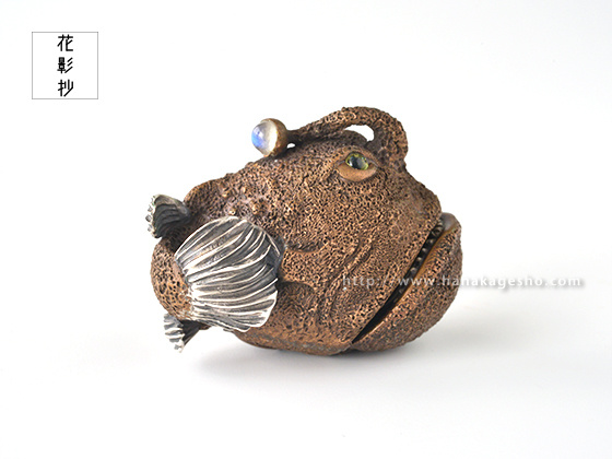 ブロンズ、真鍮、ブルートパーズ(眼)、ブルームーンストーン(提灯)