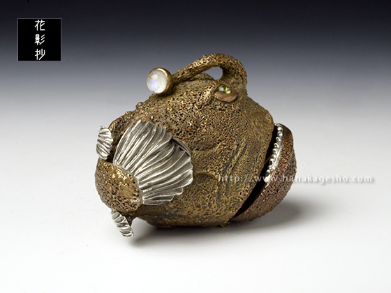 ブロンズ、真鍮、シルバー、ブルートパーズ(眼)、ブルームーンストーン(提灯)