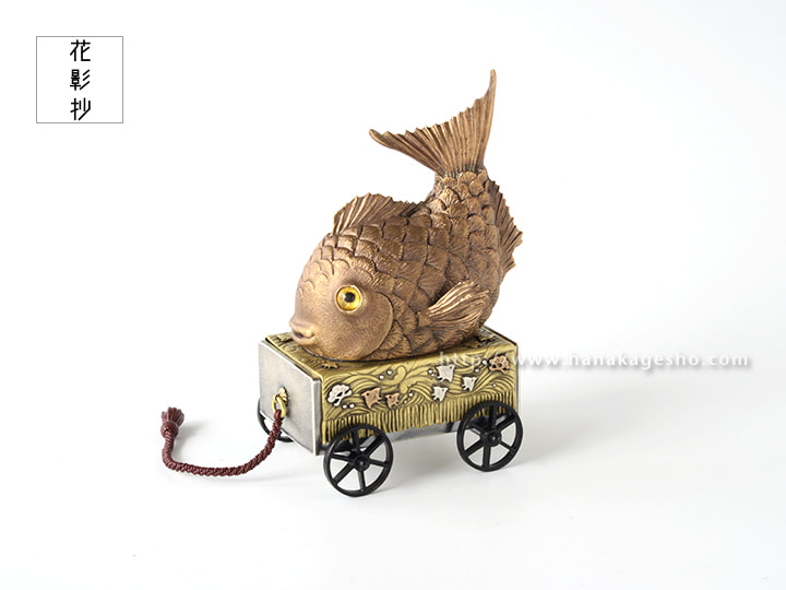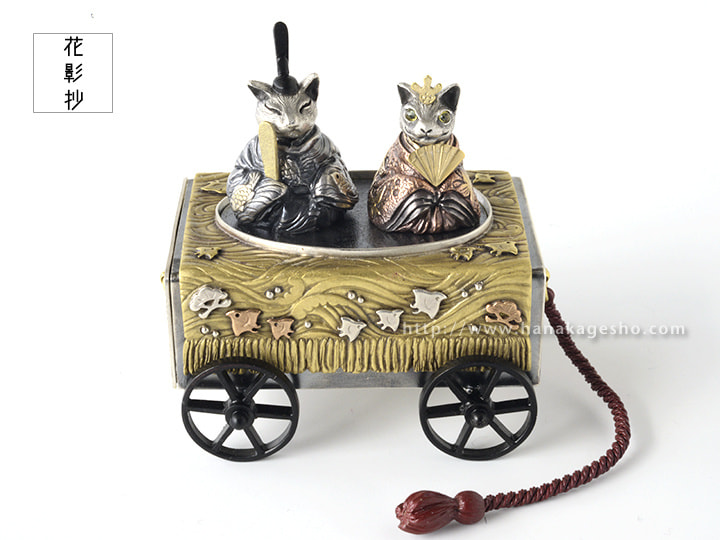 ブロンズ、銀、真鍮、漆焼付 象嵌:シトリントパーズ、ペリドット