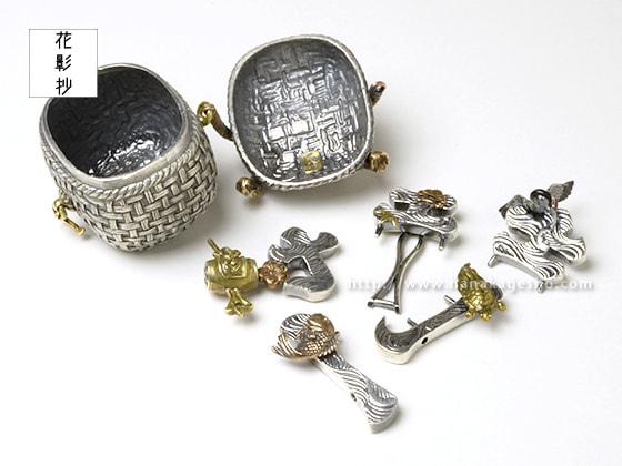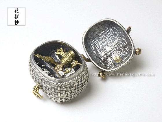 浦島太郎の玉手箱。中に入ってるパーツを組むと「壽」の文字になります。浦島太郎の元となった御伽草子の物語では玉手箱を開けた太郎は鶴になって蓬莱山に向かうという結末です。「壽」の文字はそれをイメージしています。(罠兎)