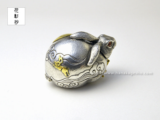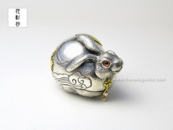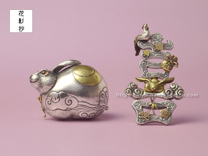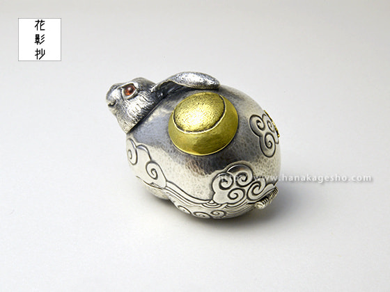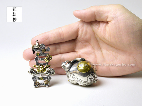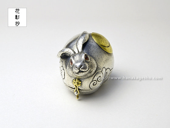 作品名は欣喜雀躍をもじっています。喜びで兎がぴょんぴょん跳ねているという意味です。中に入ったパーツを組むと「喜」の文字になります。(罠兎)