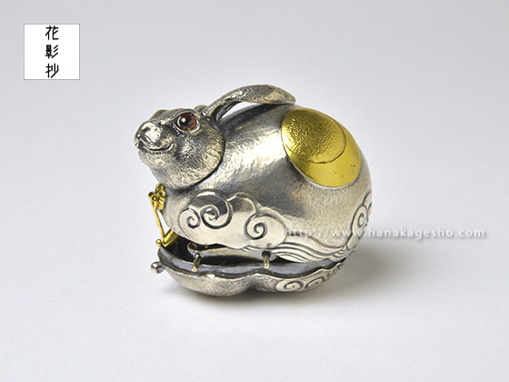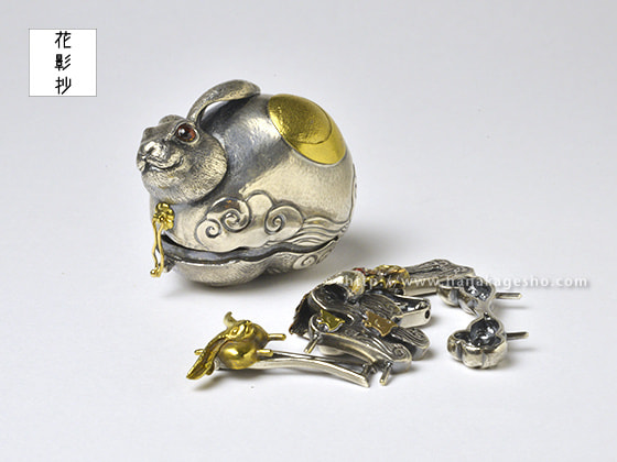 作品名は欣喜雀躍をもじっています。喜びで兎がぴょんぴょん跳ねているという意味です。中に入ったパーツを組むと「喜」の文字になります。(罠兎)