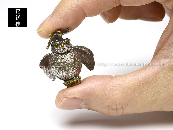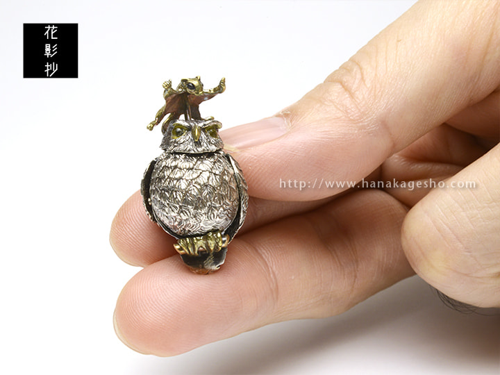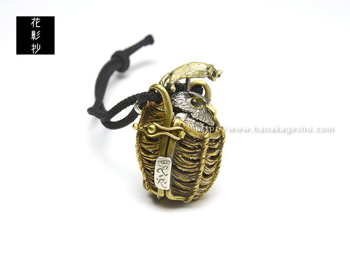ふくろうとフクロモモンガの福づくしの提げです。モモンガを押すと羽がパタパタします。(罠兎)