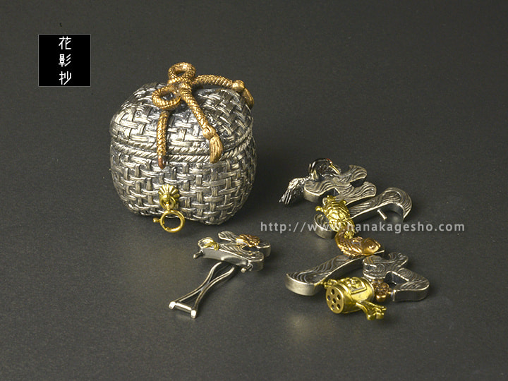 浦島太郎の玉手箱。中に入ってるパーツを組むと「壽」の文字になります。浦島太郎の元となった御伽草子の物語では玉手箱を開けた太郎は鶴になって蓬莱山に向かうという結末です。「壽」の文字はそれをイメージしています。(罠兎)