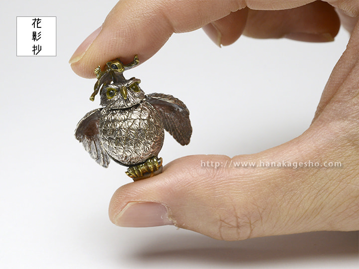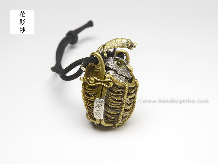 ふくろうとフクロモモンガの福づくしの提げです。モモンガを押すと羽がパタパタします。(罠兎)