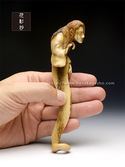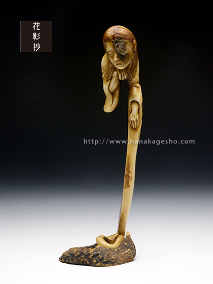 差根付:13.5 × 3.7 × 2.2 cm 台座:4.0 x 3.6 x 1.5 cm