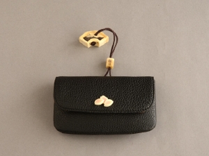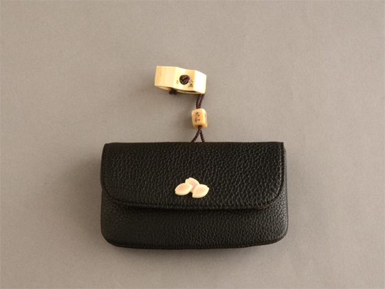 根付/ウニコール 緒締/ウニコール 前飾り/象牙 提物/小牛革