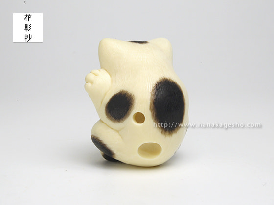 主要素材の象牙は、鹿角や黄楊などに比べると急激な温度や湿度の変化に弱い素材です。 エアコンの風が直接当たる場所や直射日光が当たる場所に作品を置いたままにしないよう、保管の際にはお気をつけください。 急激な温度や湿度の変化にさらされた場合、塊状の象牙素材はよりクラック(ひび)が入る可能性がございます。 ご留意いただけましたら幸いです。 |