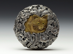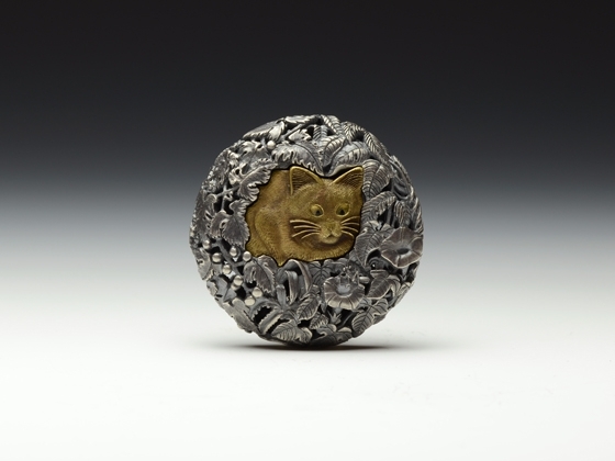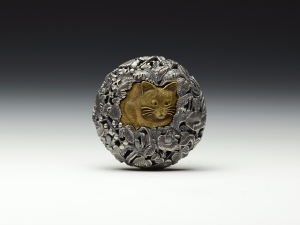 鏡蓋柳左根付「薮猫」〜葉隠れ〜