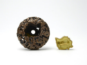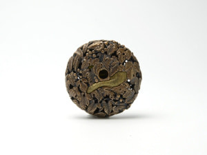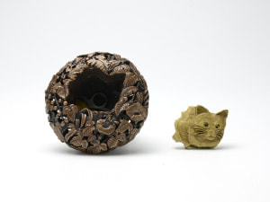 Kagamibuta Ryūsa Netsuke "Yabu Neko" (Cat Hiding among Bushes)