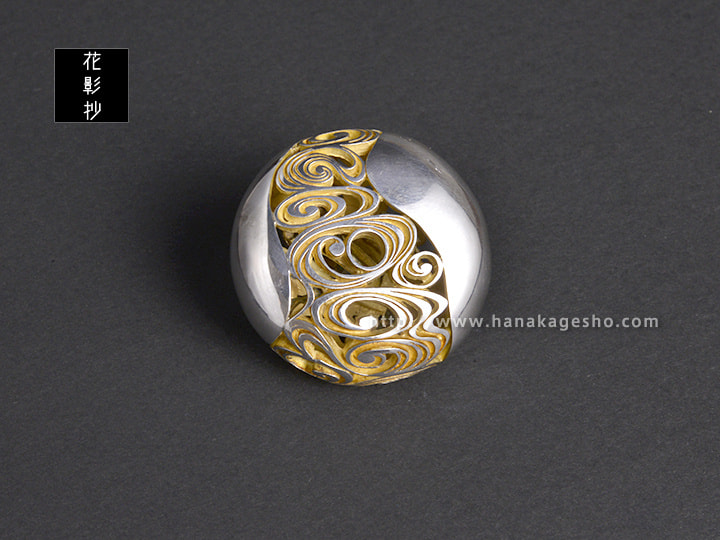 銀、真鍮(緑青仕上げ) 内側14k青金鍍金