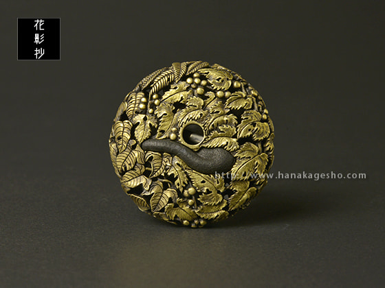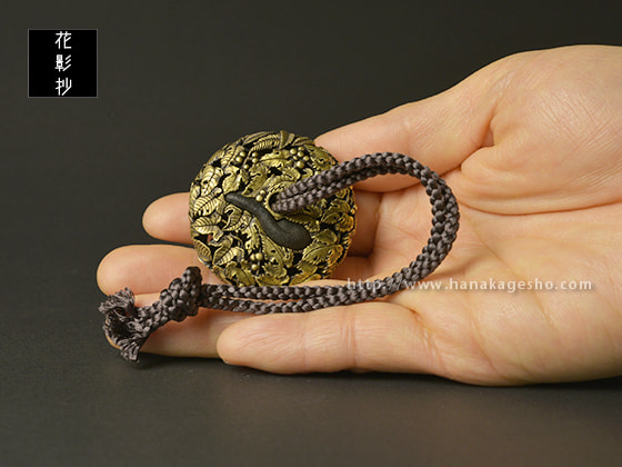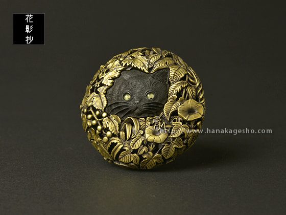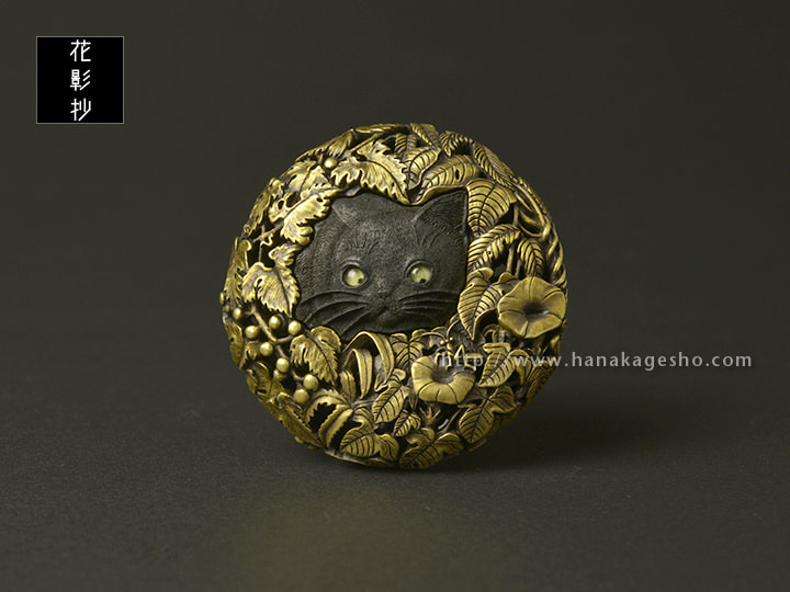 Kagamibuta Ryūsa Netsuke "Yabu Neko" (Cat Hiding among Bushes)
