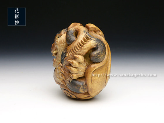 黄楊 象嵌:真珠、水牛角