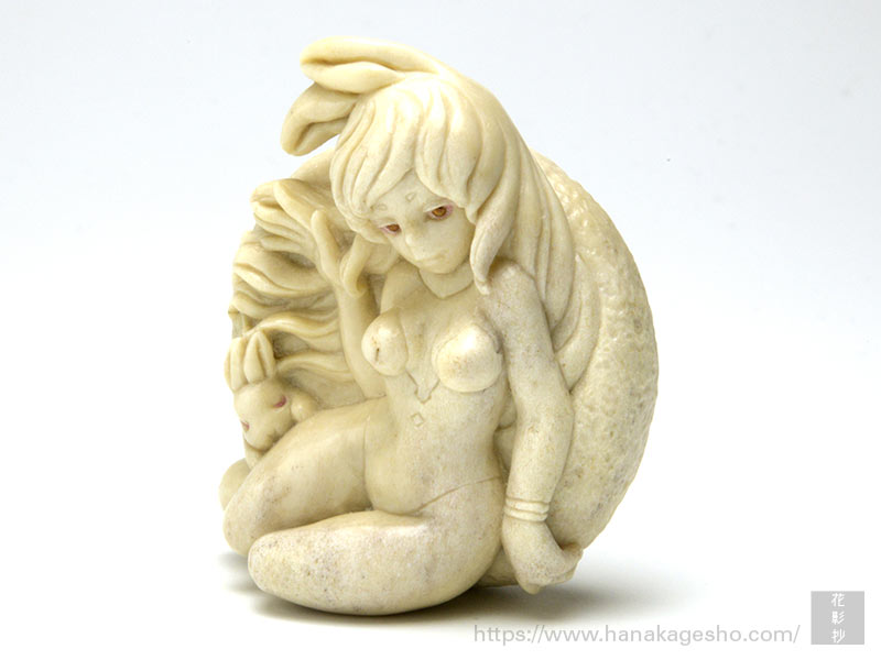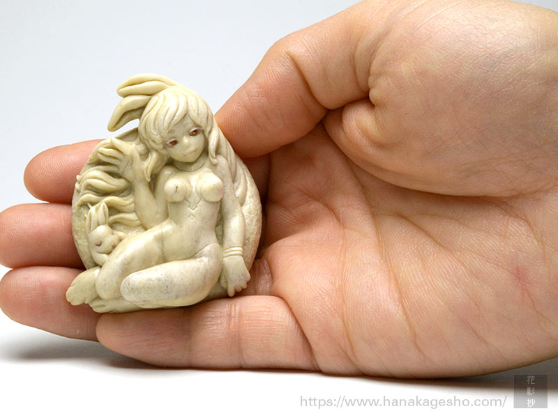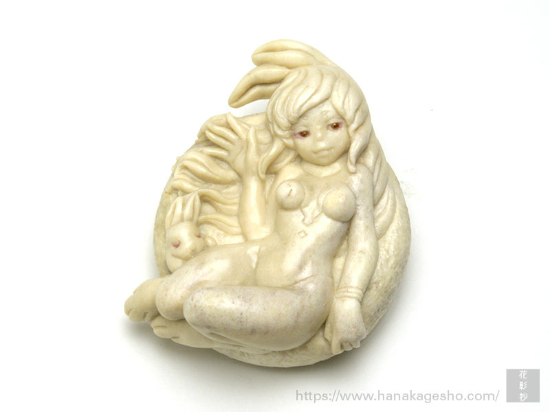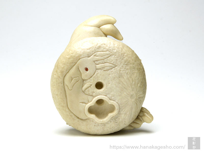 うさぎは島根出身の僕にとって、「因幡の素兎」(日本神話)の話に由来する縁結びのイメージが強いのですが、一般的には月とイメージを重ねられることが多いと思います。月の裏側は長年謎に包まれているものでしたが、最近ではその鮮明な画像も見られるようになりました。とはいえ、地上から眺める月の姿はとても神秘的で、人々の心を魅了し続けています。余談ですが、波にうさぎは古典的な意匠でよく見られますが、波は水を表して火災除け、うさぎは子だくさんの子孫繁栄の象徴。この二重の意味で家を守るというご利益が込められているのです。