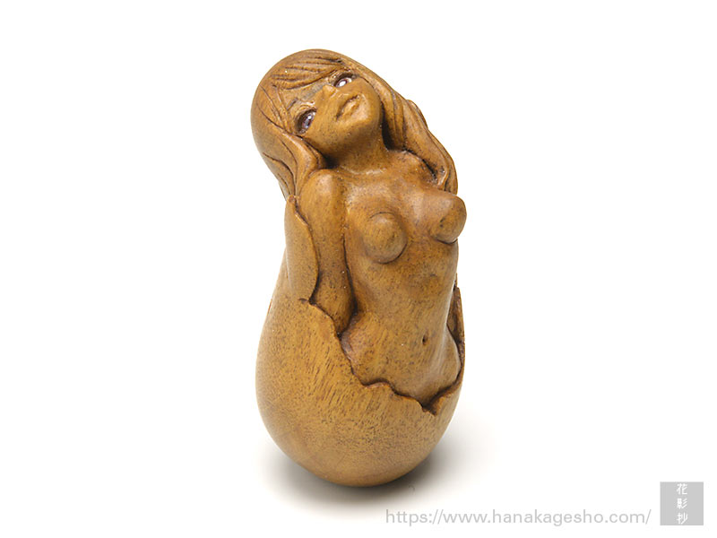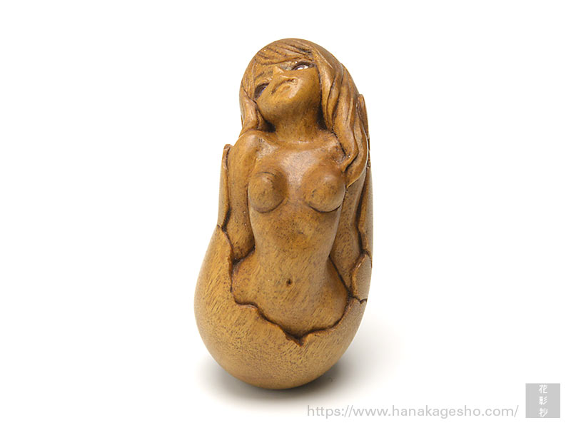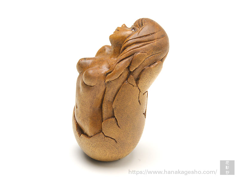 卵生少女シリーズは何作か作っていますが、人間なのに卵生というファンタジー性と、生まれたばかりの無垢な存在であるところが気に入っています。何にも染まっていないからっぽの状態という点では、今回の「からの依り代」にふさわしい作品であると考えています。